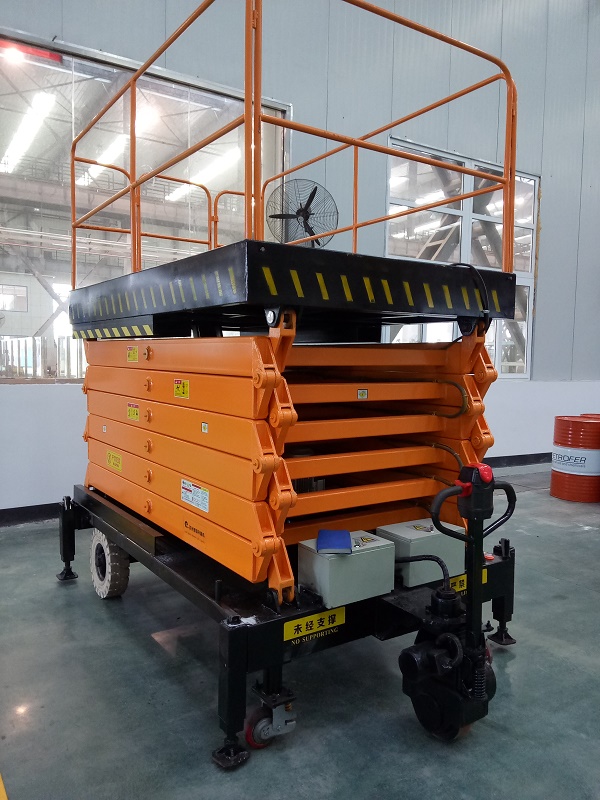 優(yōu)點(diǎn):自走式液壓升降平臺(tái)無需人工推拉來移動(dòng)升降機(jī),采用蓄電池電動(dòng)牽引,省事省力,提高工作效率。